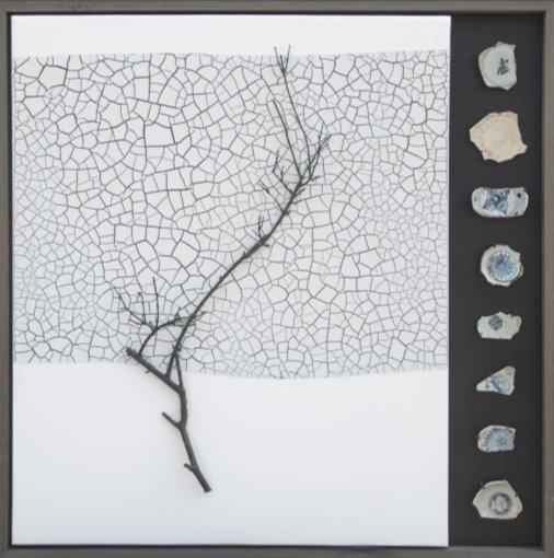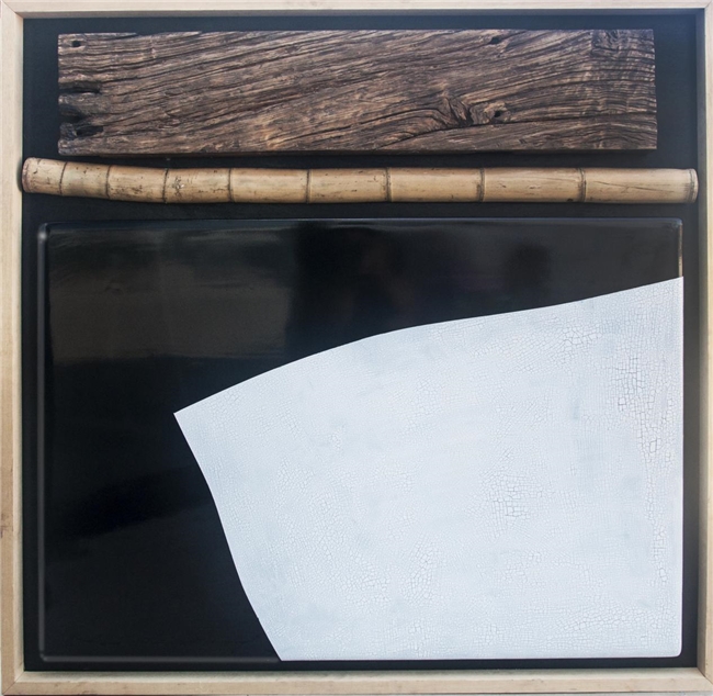 张琪凯《冬》124x124 cm 木板大漆、青铜、明清瓷⽚ 2018